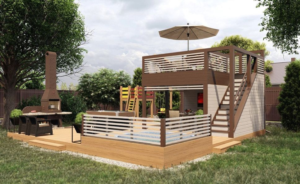 - Количество этажей. Мы построим даже двухуровневые конструкции. На второй этаж будет вести лестница.