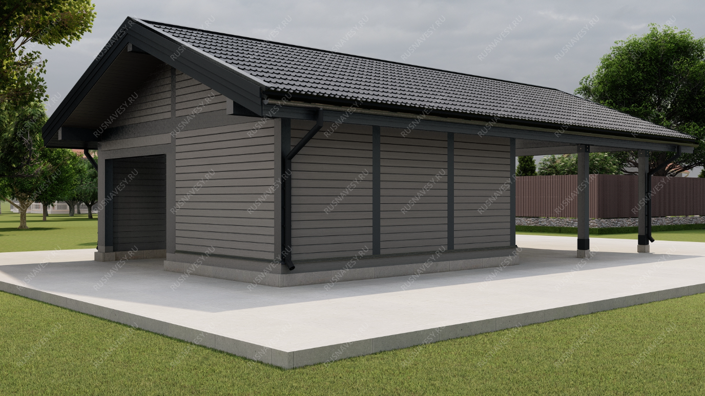 • Навес к частному дому для автомобиля ГРИМСТАД