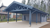 Навес «РАФ» с хозблоком представляет собой строение, объединяющее защищенную парковку на два автомобиля и многофункциональное подсобное помещение. Габариты конструкции 7×12 м с общей площадью 84 м² создают значительное полезное пространство. Основой сооружения служит каркас из хвойных пород древесины. Натуральная древесина обеспечивает конструкции экологичность, природную эстетику, способствующую гармоничному вписыванию в ландшафт загородного участка, и естественную вентиляцию под кровлей.