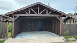 Деревянный навес для двух машин «РИВЕР» — это идеальное сочетание надежности, эстетики и функциональности для вашего загородного участка. Конструкция размером 6x6 метров создает просторную и защищенную зону на два автомобиля, надежно укрывая технику от осадков, палящего солнца и птичьего помета. Классическая двухскатная крыша не только эффективно отводит воду и снег, но и придает сооружению особый шарм и гармоничный вид. Прочный каркас из качественного дерева гарантирует исключительную долговечность и устойчивость к любым погодным условиям. Площадь в 36 м² предоставляет достаточно пространства не только для машин, но и для организации комфортной зоны хранения. Навес «РИВЕР» — это разумное инвестирование в комфорт и сохранность вашего автомобиля, а также в эстетическое совершенство вашей территории. Готовое решение для тех, кто ценит натуральные материалы, порядок и безупречный стиль.