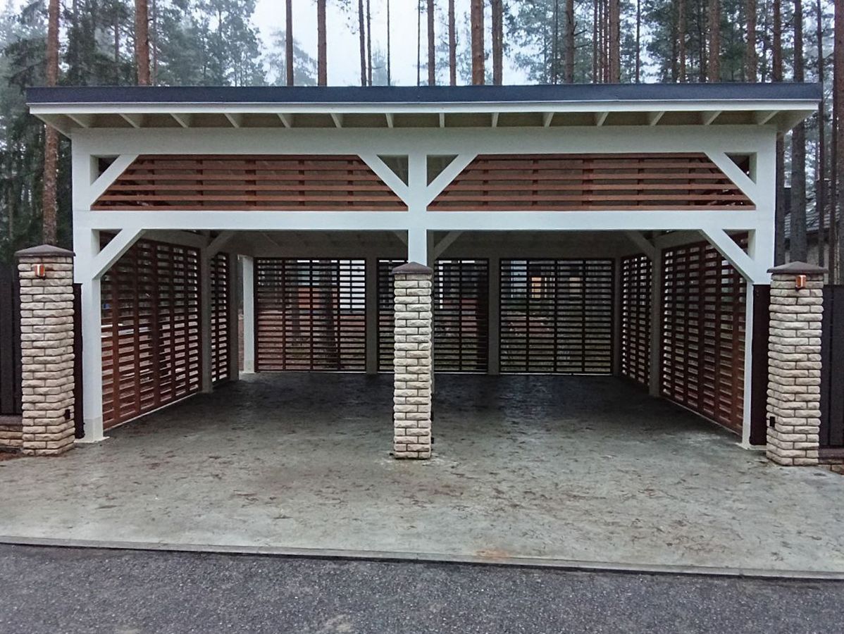 • Навес к частному дому для автомобиля ГРИМСТАД