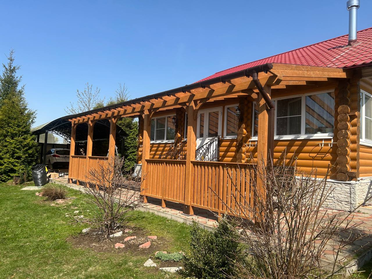 Деревянный навес на загородном участке – очень полезное, а порой и незаменимое сооружение. Он подходит для разных целей: для парковки автомобиля, обустройства зоны отдыха, хранения садового инвентаря, в качестве пристройки к дому. Помимо основного назначения, навес из дерева, как правило, выполняет декоративную функцию, создавая гармонию с домом и окружающей природой. Среди достоинств уличных деревянных конструкций: