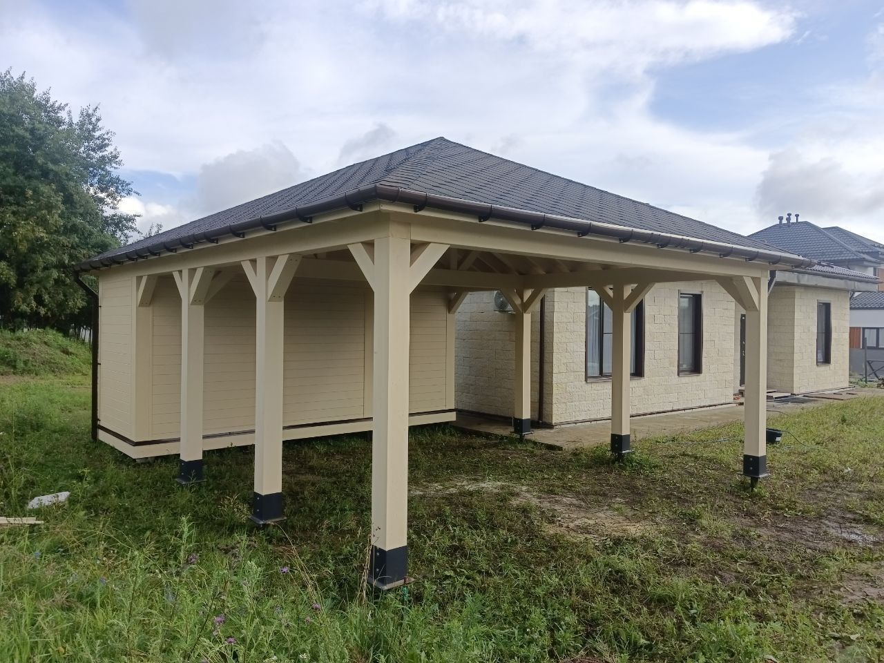 Многие проекты навесов предусматривают наличие хозяйственного блока, где можно хранить запчасти, инвентарь, инструменты, дрова и т.п. Размеры и конфигурация сооружений колеблются в широких пределах, а накрываемая площадь составляет от 15 до 74 кв. м. Соответственно, диапазон цен также очень широк – от 200 до 2200 тыс. рублей.