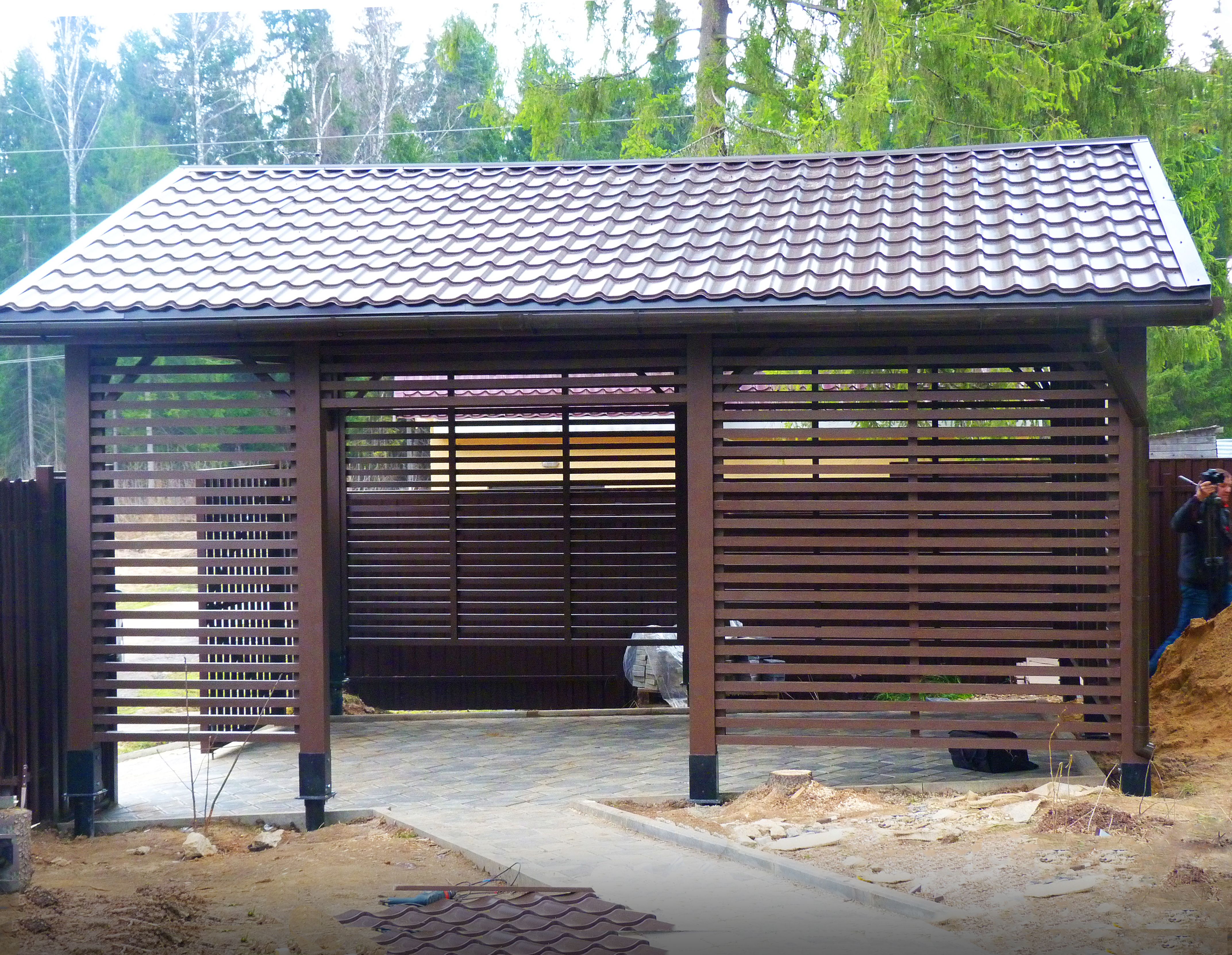 Ещё одно преимущество — ремонтопригодность. Заменить повреждённый элемент деревянного каркаса проще и дешевле, чем в случае со сварной конструкцией. А если понадобится расширить навес для автомобилей — к существующему каркасу можно пристроить дополнительную секцию.