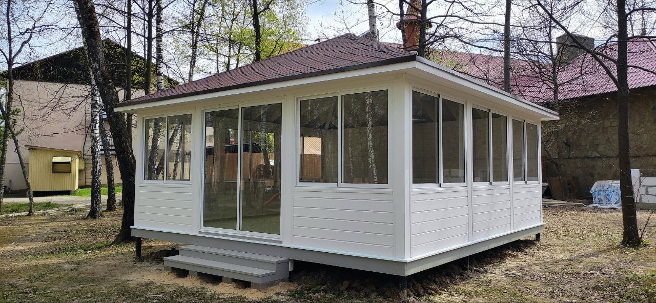 Дополнительные элементы тоже сказываются на итоговой цене: боковые ветрозащитные экраны, водосточная система, подсветка, декоративные элементы. Каждый из этих компонентов можно заказать отдельно или включить в комплект сразу.